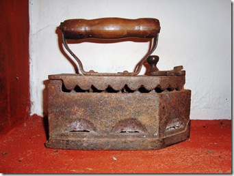 Ferro de passar roupa aquecido com brasa